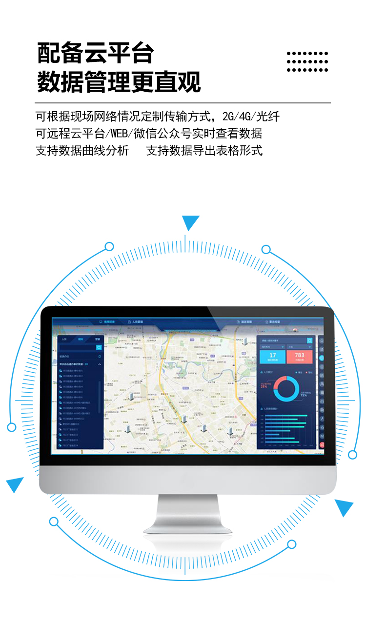 3、多種傳輸:可根據(jù)現(xiàn)場網(wǎng)絡(luò)情況定制傳輸方式,2G/4G/光纖